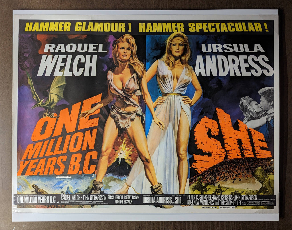 DOUBLE BILLING FOR - ONE MILLION BC / SHE  original movie poster - BRITISH QUAD Issue