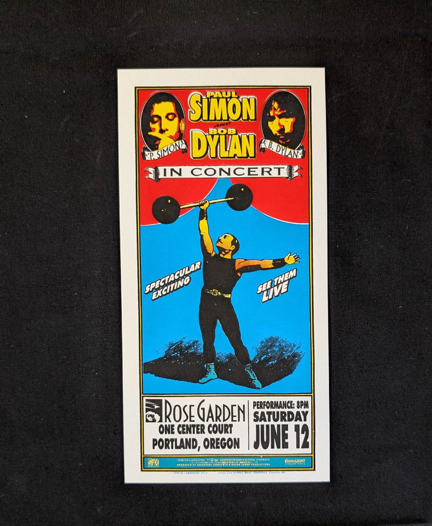 original show flier for -PAUL SIMON and BOB DYLAN at the ROSE GARDEN ONE CENTER COURT